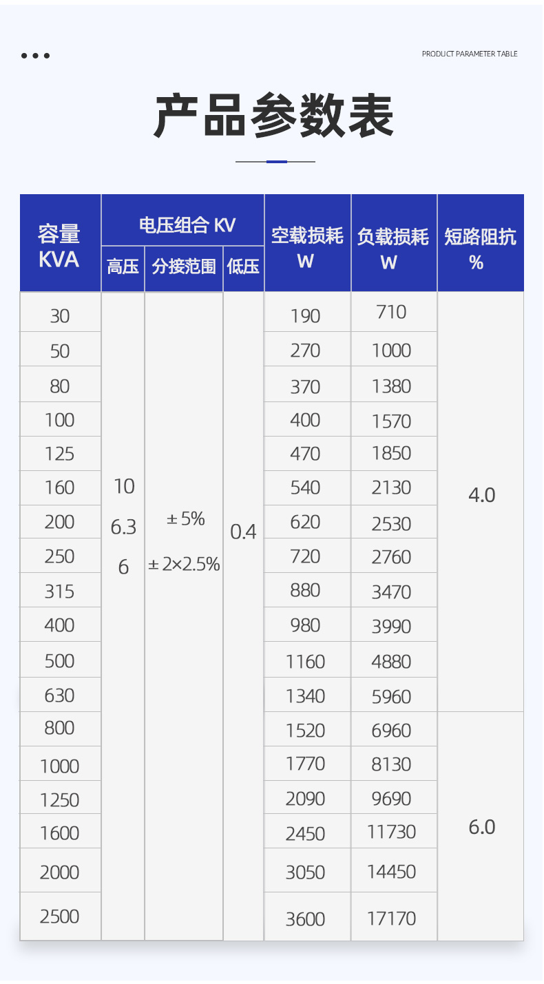 【額定容量】:10--2500KVA  【額定電壓】:6--35kv