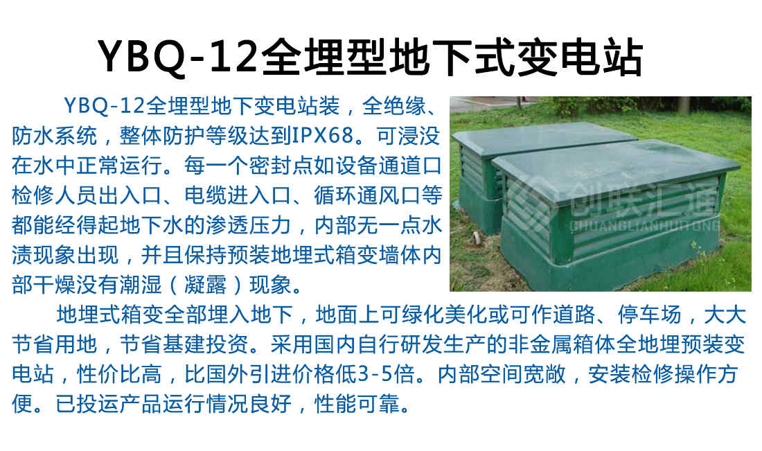 地埋式箱變主要由地埋式變壓器和廣告燈箱式的戶外開關(guān)設(shè)備組成。地埋式變壓器是由變壓器、高壓負(fù)荷開關(guān)、熔斷器等組合在一起的一種新型的緊湊型的變電設(shè)備,它安裝在地坑中,不占用地表空間,而且能在一段時(shí)間內(nèi)浸沒在水中運(yùn)行。廣告燈箱式的戶外開關(guān)設(shè)備為集廣告牌及戶外開關(guān)設(shè)備為一體的混合結(jié)構(gòu),安裝在地面。箱體內(nèi)部為戶外高低壓配電柜,兩側(cè)為廣告燈箱,具有極佳的視覺效果。
