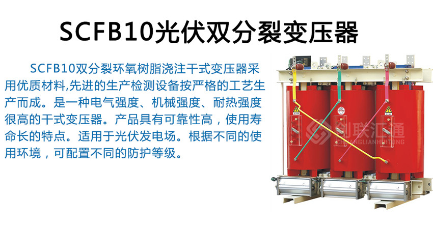 SCFB10雙分裂環(huán)氧樹脂澆注干式變壓器采用優(yōu)質(zhì)材料,先進(jìn)的生產(chǎn)檢測設(shè)備按嚴(yán)格的工藝生產(chǎn)而成。是一種電氣強(qiáng)度、機(jī)械強(qiáng)度、耐熱強(qiáng)度很高的干式變壓器。產(chǎn)品具有可靠性高,使用壽命長的特點(diǎn)。適用于光伏發(fā)電場。根據(jù)不同的使用環(huán)境,可配置不同的防護(hù)等級。